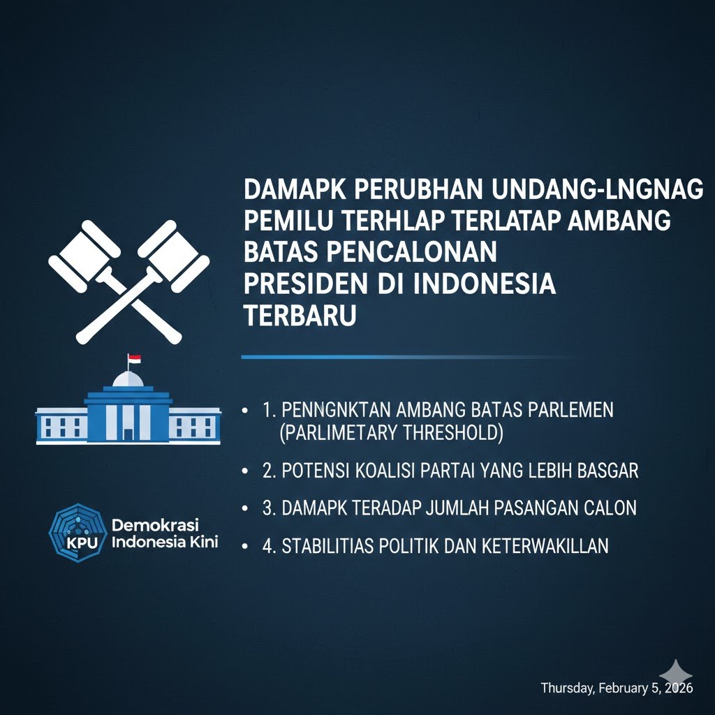 Dinamika politik di Indonesia selalu mengalami fluktuasi yang signifikan menjelang perhelatan pesta demokrasi lima tahunan. Salah satu topik yang paling konsisten memicu perdebatan sengit di ruang publik maupun meja hijau adalah aturan mengenai ambang batas pencalonan presiden atau yang lebih dikenal dengan istilah presidential threshold. Perubahan undang-undang pemilu terkait aturan ini bukan sekadar urusan teknis administratif, melainkan sebuah instrumen krusial yang menentukan wajah kepemimpinan nasional dan arah koalisi partai politik di masa depan.